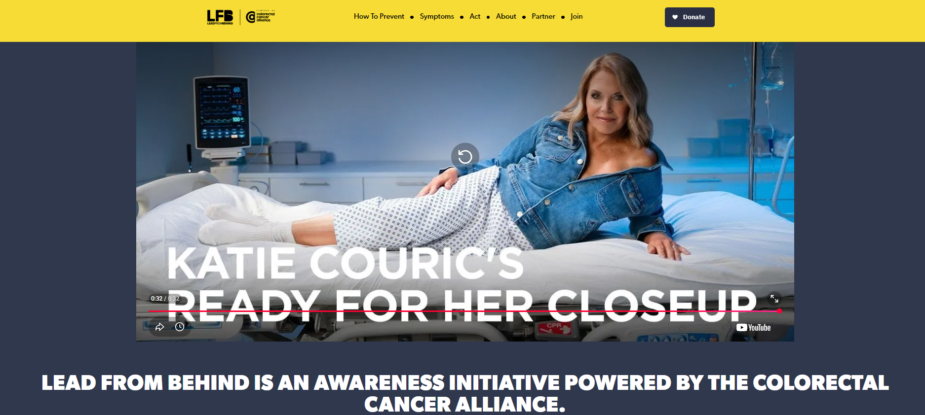 Katie Couric teamed up with the Alliance, the nation’s leading nonprofit dedicated to ending colon cancer, and Ryan Reynolds’ creative agency, Maximum Effort, to LEAD FROM BEHIND timed to the 25th anniversary of sharing her colonoscopy on NBC TODAY. LEAD FROM BEHIND is a series of entertaining videos featuring celebrities breaking the stigma surrounding colon cancer to spark conversations about screening for The Preventable Cancer. Couric, a veteran journalist and respected media personality, has been a longtime advocate for colon cancer awareness since losing her husband to the disease. Katie Couric’s Ready For Her Close-Up helps demystify, destigmatize, and prioritize screening to encourage people to get it done.